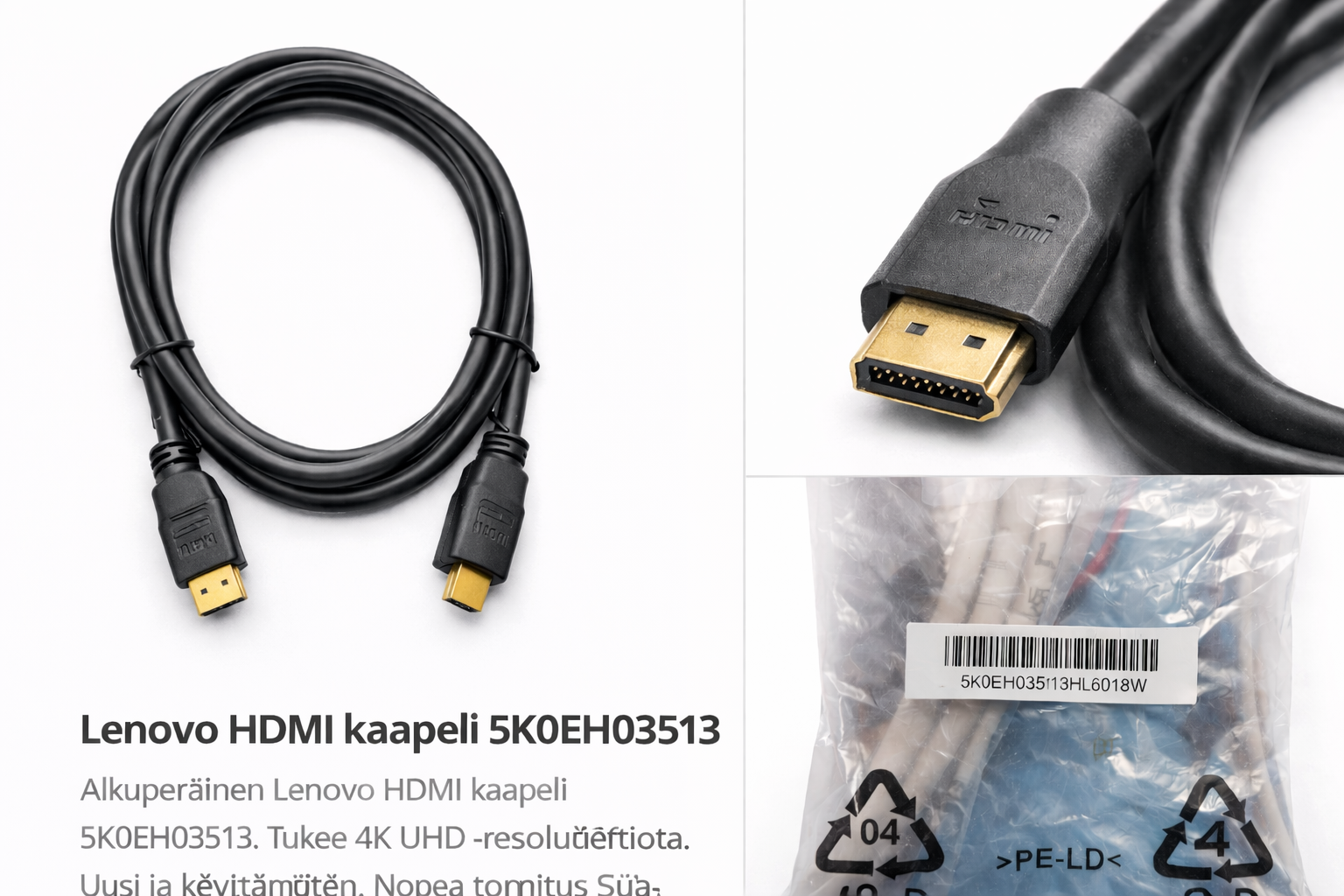 Myydään alkuperäinen Lenovo HDMI-kaapeli (5K0EH03513). Kaapeli on uusi ja käyttämätön, ja tarjoaa luotettavan kuvan- ja äänen siirron kaikkiin HDMI-yhteensopiviin laitteisiin.